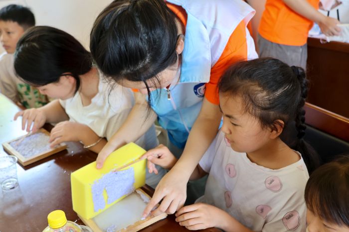 圖為團(tuán)隊(duì)成員帶領(lǐng)孩子們制作種子紙 郭佳晨攝。