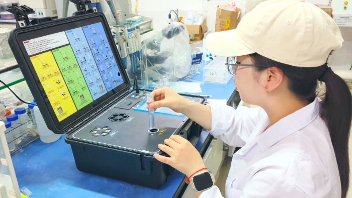 圖為團隊成員在實驗室進行氮磷元素含量分析。李飛月攝