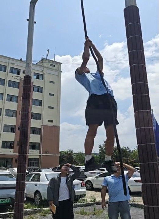 詳細講解結束后,在領隊帶領下,大家精神抖擻地來到野外訓練場,了解救護隊員的體能測試標準——4米徒手攀爬、鍛煉臂力的引體向上等,都是隊員需達標的基礎要求。在領隊許可下,大家逐一體驗了這些基礎體能項目,深切體會到其中的不易。