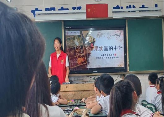 7月9日,團隊走進勝利街小學,將中醫藥文化宣傳與互動教學相結合,為孩子們送上一堂生動的傳統文化課。活動以一套簡易養生功法教學為切入點,隊員們一邊示范舒展的招式,一邊用通俗語言講解動作中蘊含的“氣血調和”“經絡暢通”等中醫理念,讓孩子們在模仿練習中感受傳統醫學的獨特智慧。