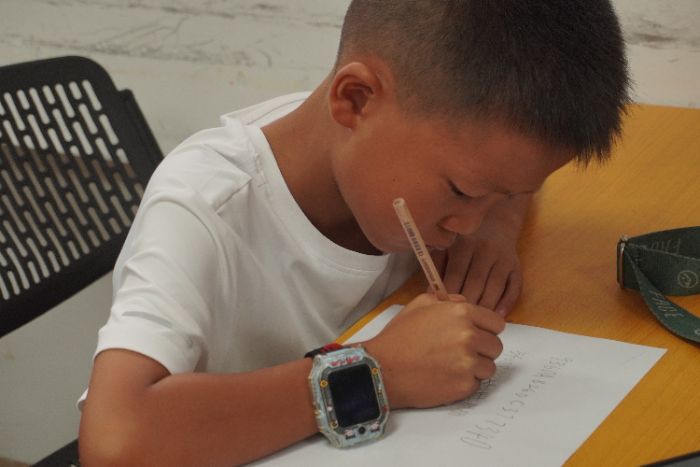 圖為密碼設計競賽現場小朋友認真設計密碼