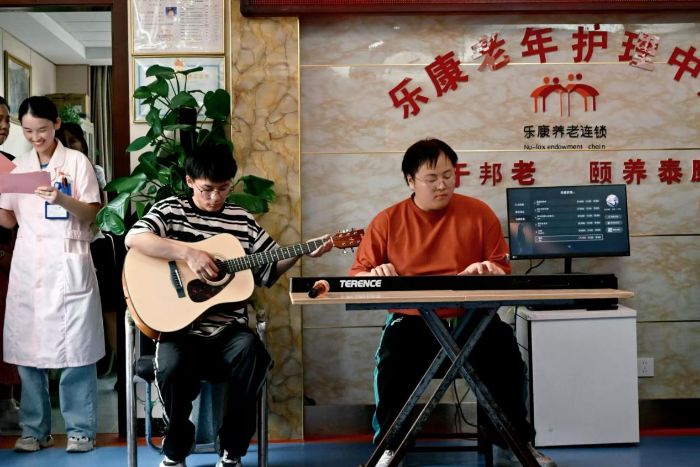 隨后,養老院工作人員和實踐小分隊為老人們帶來了豐富多彩的活動。隊員們表演了夢中的婚禮樂曲演奏、桃花朵朵開舞蹈等節目,還邀請老人一起參與互動游戲。護理中心工作人員表示,這樣的活動不僅豐富了老人的文化生活,也讓他們感受到社會的關愛。