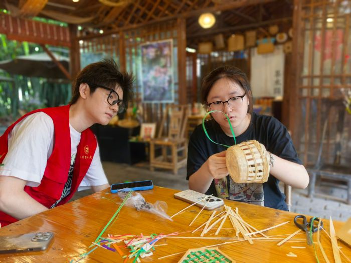 7月18日,四川農(nóng)業(yè)大學(xué)林學(xué)院“星筠·遺路竹行”社會實踐團隊深入四川省崇州市道明村,開展以“傳承竹編非遺文化”為主題的實踐活動。團隊旨在通過沉浸式的學(xué)習(xí)與交流,讓更多人了解并傳承竹編技藝,助力非遺文化煥發(fā)新的活力和生機。在當?shù)卮迕袷职咽值闹v解與傳授下,隊員們逐步掌握了竹編基礎(chǔ)技法,協(xié)作完成了一系列富有文化特色的竹編作品,并在親身體驗編織的過程中,深刻感悟到每一件竹編作品背后蘊含的匠心智慧與艱辛不易。(通訊員 羅嬌楊)