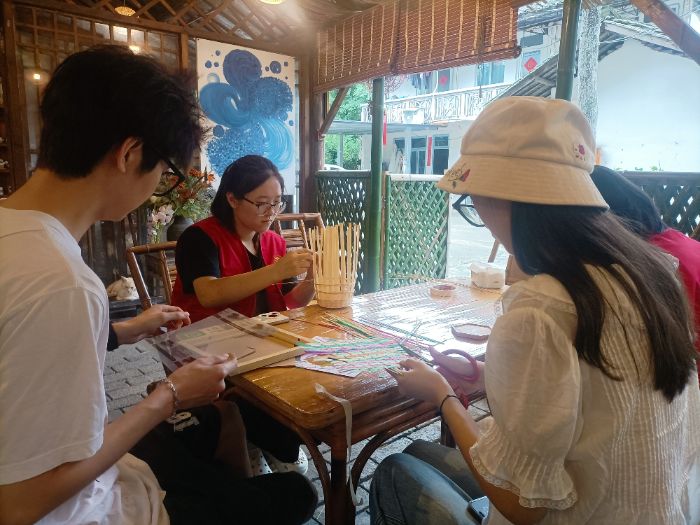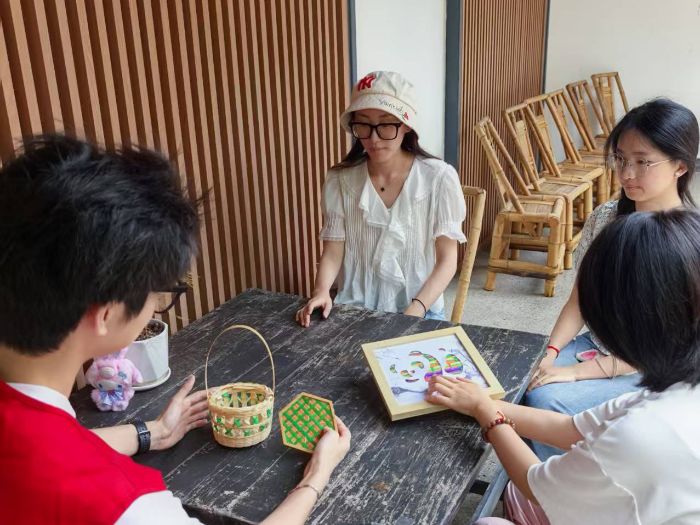 圖為實踐隊隊員在進行竹編技藝學(xué)習(xí)后進行討論與總結(jié)。羅嬌楊攝