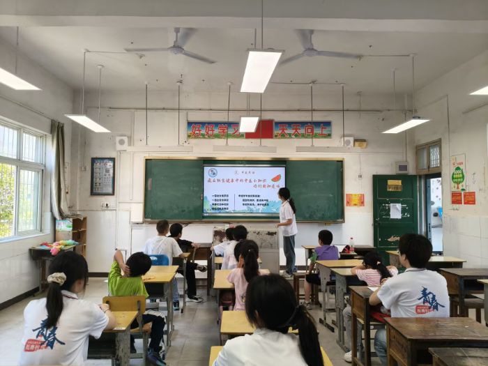 圖為團(tuán)隊(duì)成員在夏閣鎮(zhèn)中心小學(xué)開展中醫(yī)藥文化宣傳活動(dòng)。 雷施雨 提供