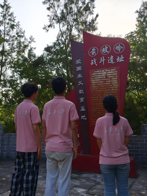 驕陽灼灼,前坡嶺的山風裹挾著歷史的回響,烈士陵園的松柏搖曳著肅穆的敬意,博物館的展柜沉淀著文明的密碼。為宣傳弘揚英烈事跡與精神、賡續紅色基因血脈,同時深入感知商南的歷史文化。7月16日,長安大學“青禾筑夢,阡陌研行”暑期社會實踐隊開展“緬懷先烈傳薪火,歷史文脈潤初心”主題實踐活動,走進前坡嶺戰斗遺址、商南縣烈士陵園與商南縣博物館,在戰火淬煉的記憶里筑牢信仰,于歲月沉淀的文脈中汲取力量。