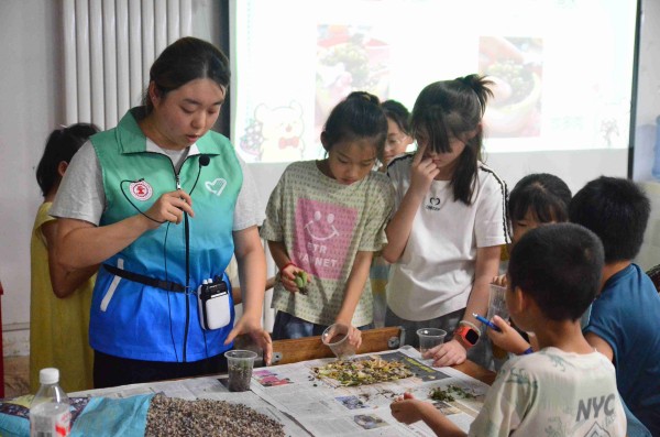 圖為志愿者在帶小朋友們理解植物的“生存密碼”