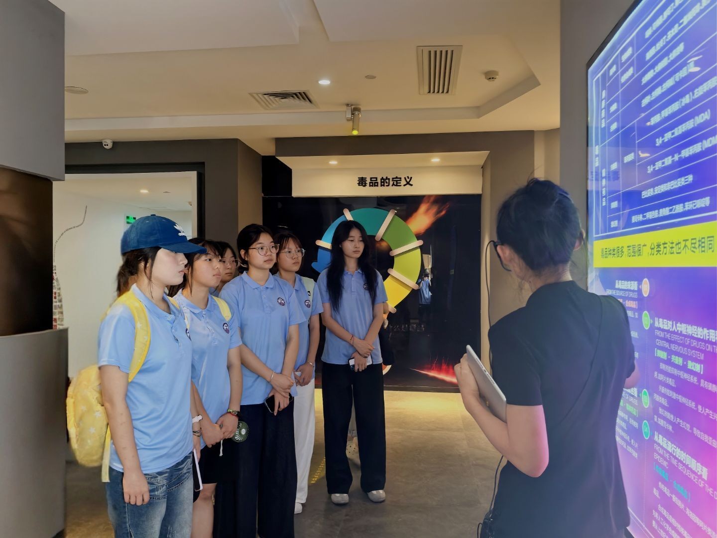 走出社區課堂,實踐隊前往泉州市禁毒教育基地深入學習,通過禁毒宣傳片、觀摩毒品仿真模型、體驗VR毒癮模擬等方式,系統學習了毒品危害、防毒技巧及相關法律法規。隊員們邊學邊記,將所見所感轉化為后續宣教的鮮活素材,形成“兒童啟蒙-隊員提升-反哺教學”的良性循環,讓防毒意識在雙向成長中扎根。