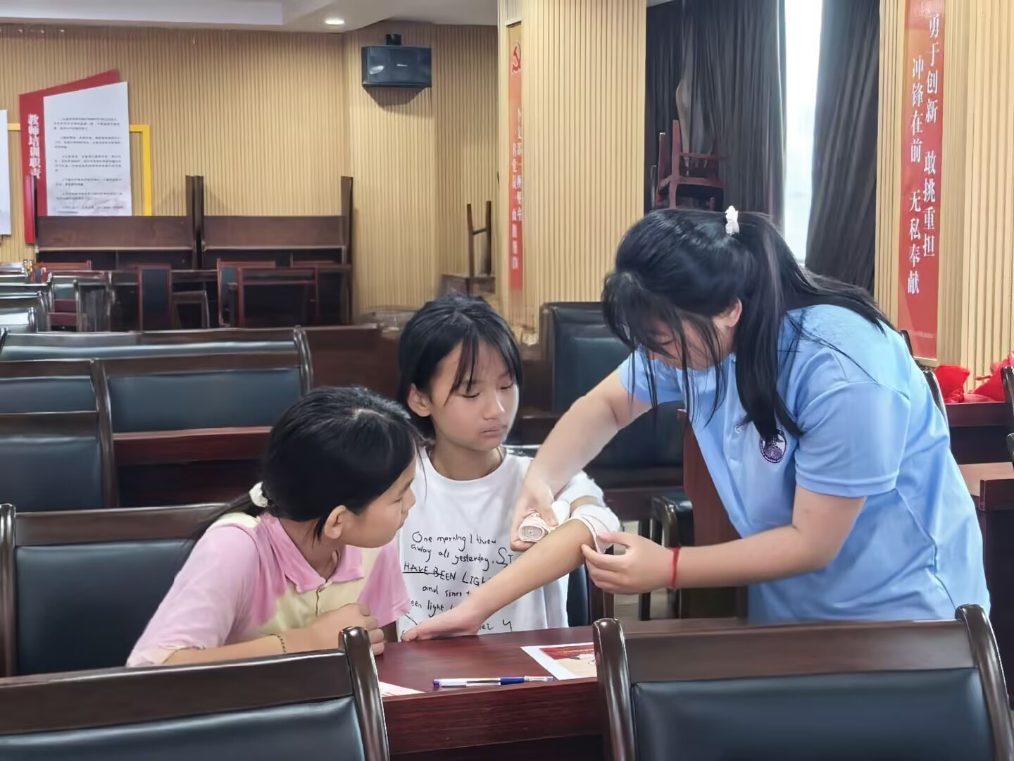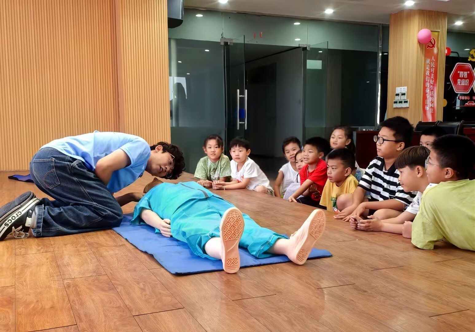 在中喬夏令營和優安納夏令營的課堂中,隊員們化身專業講師,通過“理論+實操”的立體化教學模式,系統地教授心肺復蘇術(CPR)、海姆立克急救法和創傷包扎技能,帶領小朋友們分組演練,將急救步驟轉化為肌肉記憶。模擬溺水救援、氣道梗阻處理等場景,讓“小小急救員”們掌握在突發狀況下自救互救的關鍵能力,為生命安全筑起第一道防線。