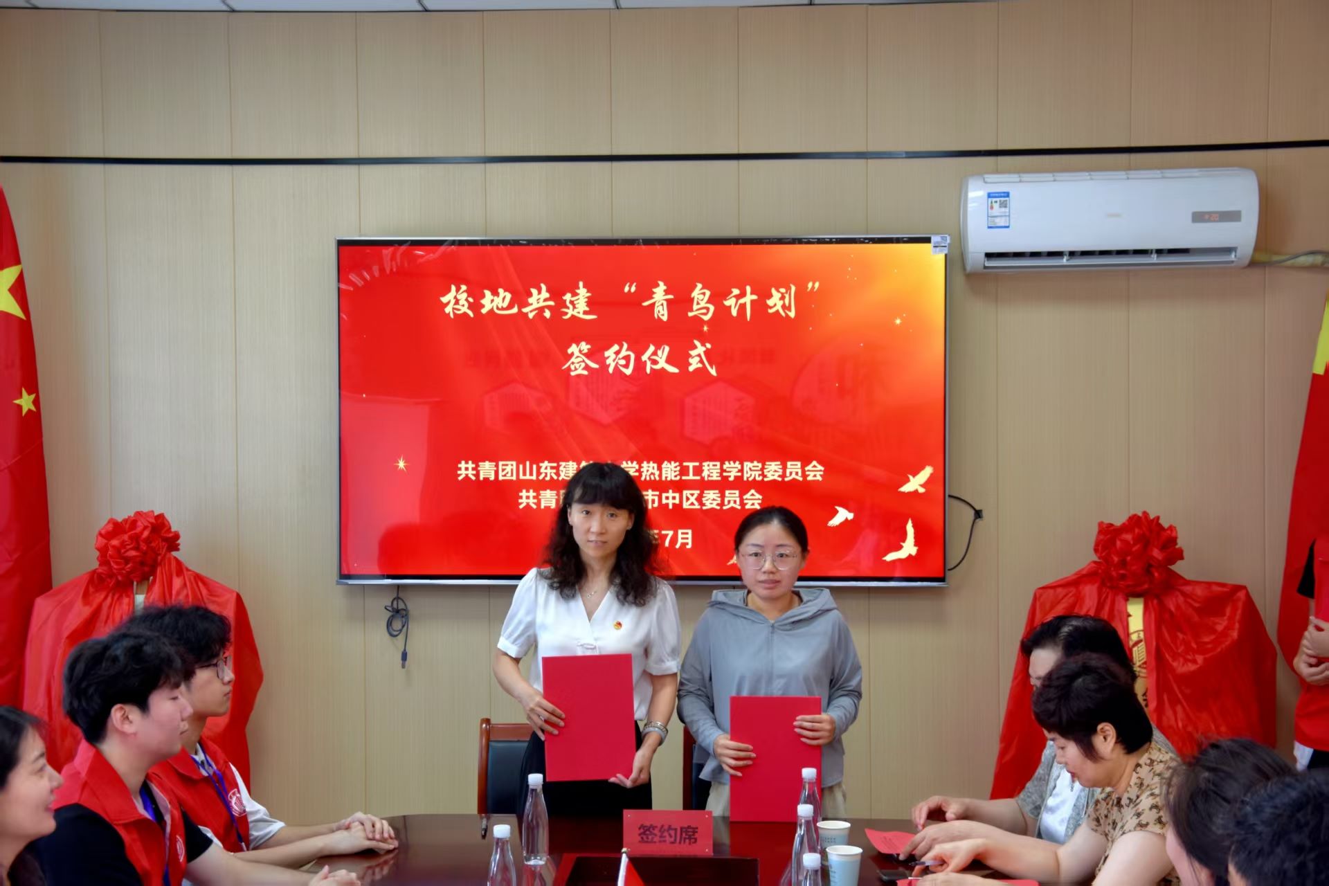 接著,蔣煒瑋與石麗簽訂《校地共建“青鳥計(jì)劃”校地合作協(xié)議書》,蔣煒瑋與紀(jì)麗和陳菲分別簽訂了《山東建筑大學(xué)大學(xué)生社會(huì)實(shí)踐基地協(xié)議書》。