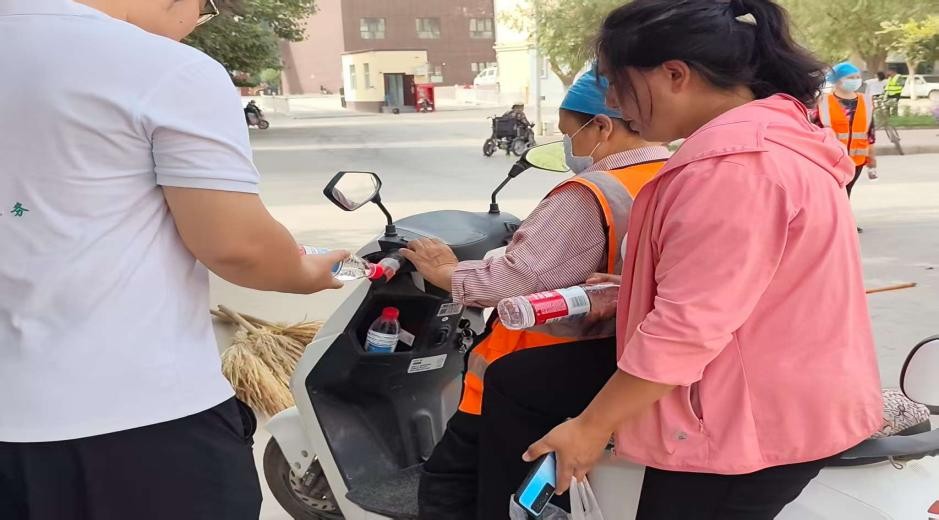 清掃工作結束后,實踐團向圖妮薩古經理及參與活動的環衛工人贈送了礦泉水、雪糕等物資,表達對基層環保工作者的敬意與感謝。圖妮薩古經理對實踐團的辛勤付出給予肯定,認為此次活動既響應了“共建共治共享”的社會治理要求,也為社區環境提升注入了青春動力,對推動“宜居宜業和美社區”建設具有積極意義。