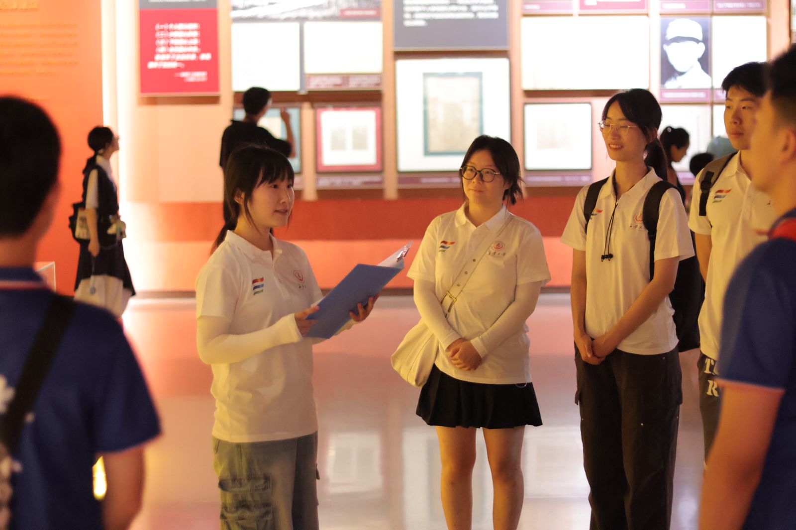 循著歷史脈絡,實踐隊員們先后走進“紅軍長征”、“抗日戰爭”、“新民主主義的誕生”、“延安精神的發祥”等展廳。從銹跡斑斑的步槍、磨損的軍衣,到泛黃的電報手稿、簡陋的辦公用具,每一件文物都承載著動人的革命故事。在“實事求是”石刻前,隊長廖卓為大家帶來了“文物中的信仰”主題微宣講。透過館內陳列文物背后的故事,實踐隊員更加深刻地領悟到自力更生、艱苦奮斗的延安精神的豐富內涵。