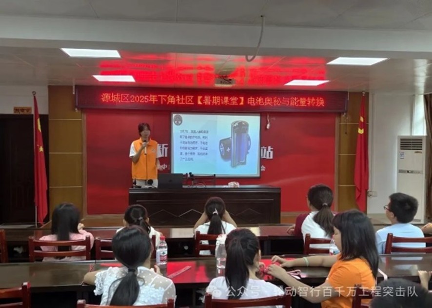 當科技實驗遇上千年非遺,課堂便成了魔法的雙重奏。7月12日,“輪動智行”百千萬工程突擊隊的杜欣瑤與李子慧同學化身講師,在下角社區(qū)掀起知識風暴——上午拆解電池的百年進化史,下午舞動剪刀復活千年紋樣。孩子們左手握科學密鑰,右手刻文化圖騰,一場跨次元的奇妙之旅就此展開。