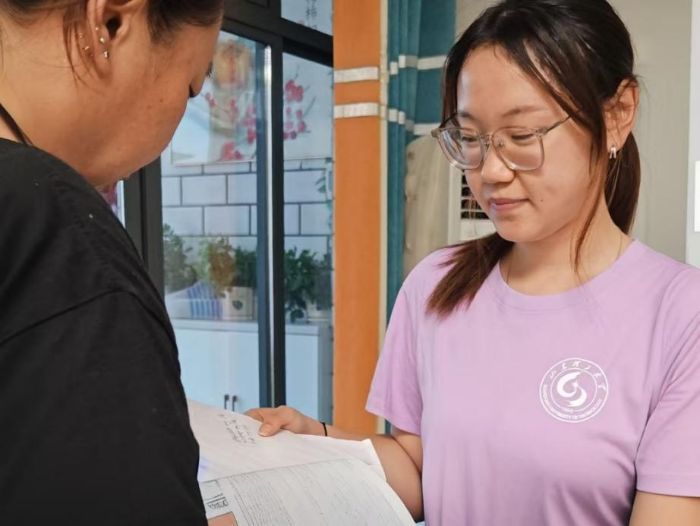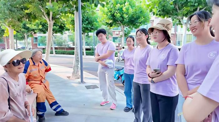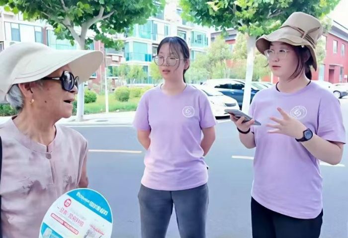 圖為熒偵探實踐團對社區(qū)居民進行調研 閆偉鑫 攝