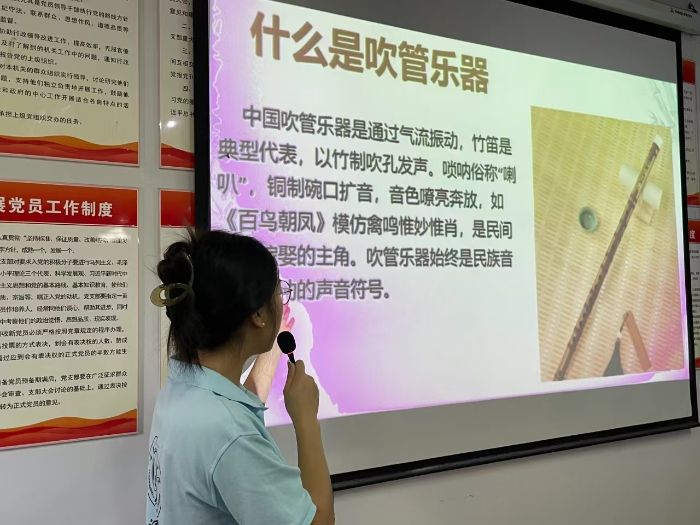 課程開(kāi)始,支教組成員以生動(dòng)形象的圖片與視頻為引,為孩子們揭開(kāi)二胡、琵琶、竹笛等傳統(tǒng)樂(lè)器的神秘面紗,細(xì)致展現(xiàn)其外觀形制與獨(dú)特構(gòu)造,深入講解發(fā)聲原理。孩子們眼中的好奇與興奮交錯(cuò),星星般的眸子熠熠生輝。