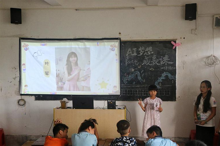 在傳統非遺之外,團隊還巧妙融入了現代科技元素。“我想當醫生,給別人治病!”“我要開飛船去月亮上,當宇航員!”7月15日的“AI筑夢”課堂上,孩子們爭先恐后地分享著自己的理想。這堂特色課充分發揮了隊員們的專業優勢:他們悄悄為每個孩子拍下笑臉,記錄下他們向往的職業,然后用AI繪畫工具生成了“未來的自己”。當隊員們將打印好的AI畫像分發到孩子們手中時,現場瞬間爆發出驚喜的歡呼聲。