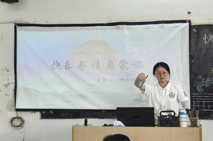 突擊隊葉子老師(化名)進行書法課教學。楊爽 供圖