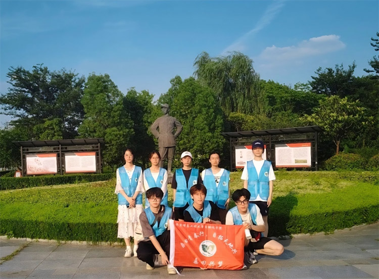 圖為團隊成員在胡特庸烈士雕像前合照(張飛翔 供圖)