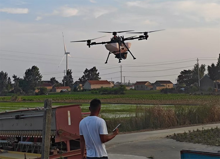 圖為農技人員正在控制無人機施肥(周昕雨 供圖)