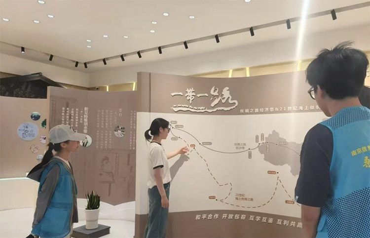 桑田織夢啟新程,古村煥彩譜華章 團隊來到王村村史館,在講解員的生動介紹中,隊員們系統了解了王村百余年的發展歷程,尤其對當地特色蠶桑產業留下深刻印象:全村87%的園地為桑園,90%的農戶以蠶桑為業,從傳統種植到精深加工,當地的蠶桑技術與產品已沿著“一帶一路”遠銷海外,成為村民致富的“黃金產業”。