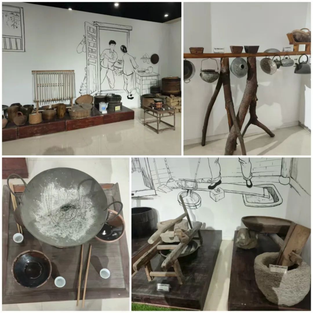 首先映入眼簾的是傳統飲食工具。古樸的石磨,由上下兩個圓石盤組成,上盤有小孔用于倒入谷物。電力未普及時,人們人力推動石磨將谷物磨成粉制作面食,粗糙紋理見證無數次研磨的辛勤,承載著家庭團聚共享美食的溫馨。精巧的竹制蒸籠,層層疊放,蒸汽裊裊升騰,仿佛能聞到蒸出糕點、包子的香氣,竹制材質環保且賦予食物獨特清香。