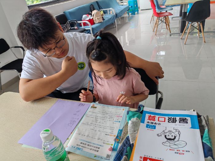 學業輔導精準化:面對20余名年齡段不同的小朋友,志愿隊哥哥姐姐們每天都會化身“小導師”開展精準輔導。從數學公式的靈活運用到語文課文的深度理解,從作業難題的分步拆解到學習方法的分享,志愿者們耐心答疑、循循善誘。筆尖劃過習題的沙沙聲里、不僅有知識的清晰傳遞,更有學習信心的慢慢建立——當孩子們緊鎖的眉頭舒展,學識的微光正照亮他們的暑期成長路。