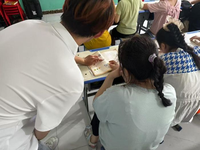 圖為實踐隊員輔導學生功課。張漢榮供圖