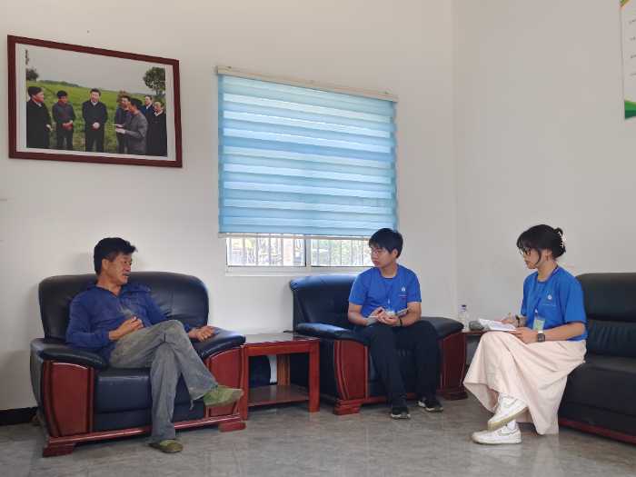 下午,團隊前往程夕兵農事服務中心采訪種糧大戶程夕兵。他身著沾泥工作服,以一線生產者視角分析秸稈回收實際問題,提出“提高農民參與度、加大政府技術與政策扶持”等建議,并勉勵團隊“將專業知識與鄉村實踐結合,為振興鄉村貢獻力量。”