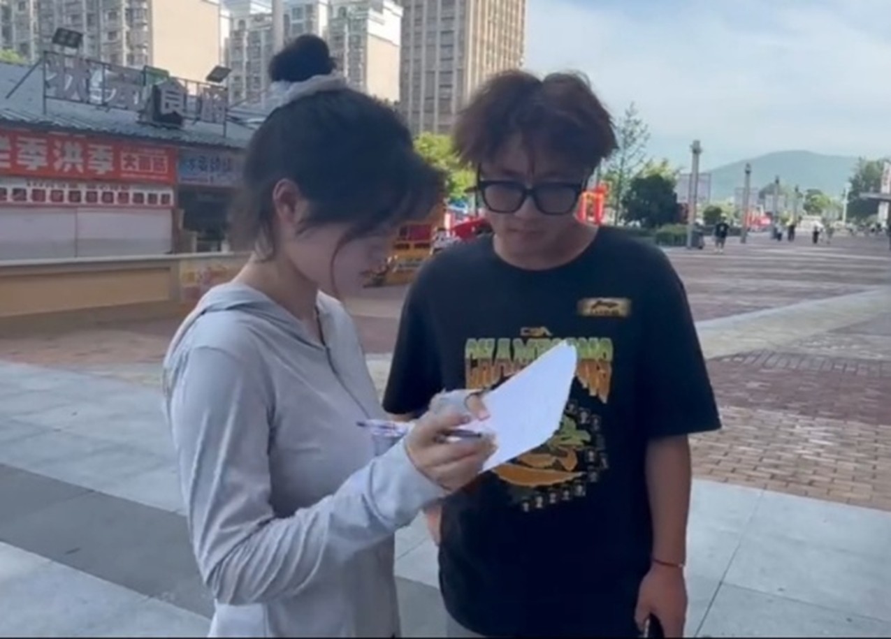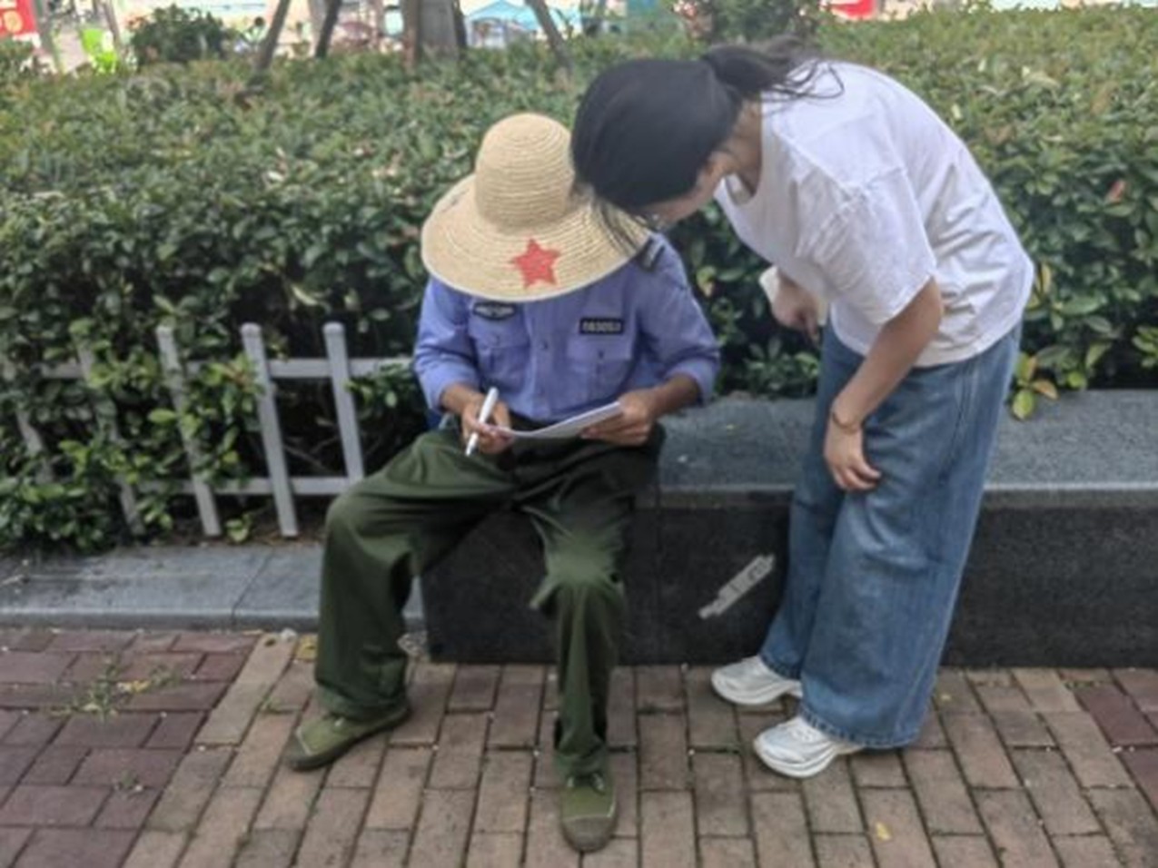 實踐團(tuán)成員走訪街道發(fā)放調(diào)查問卷 葉晨供圖