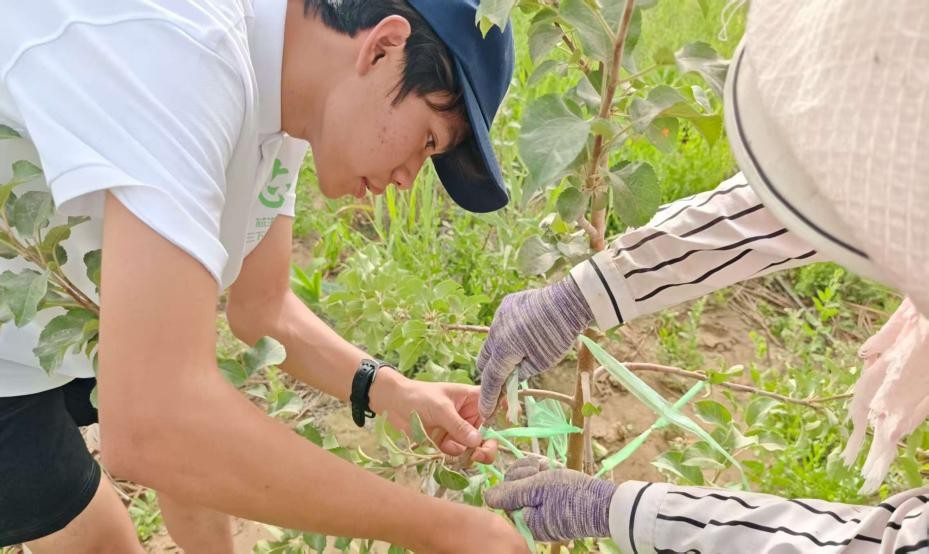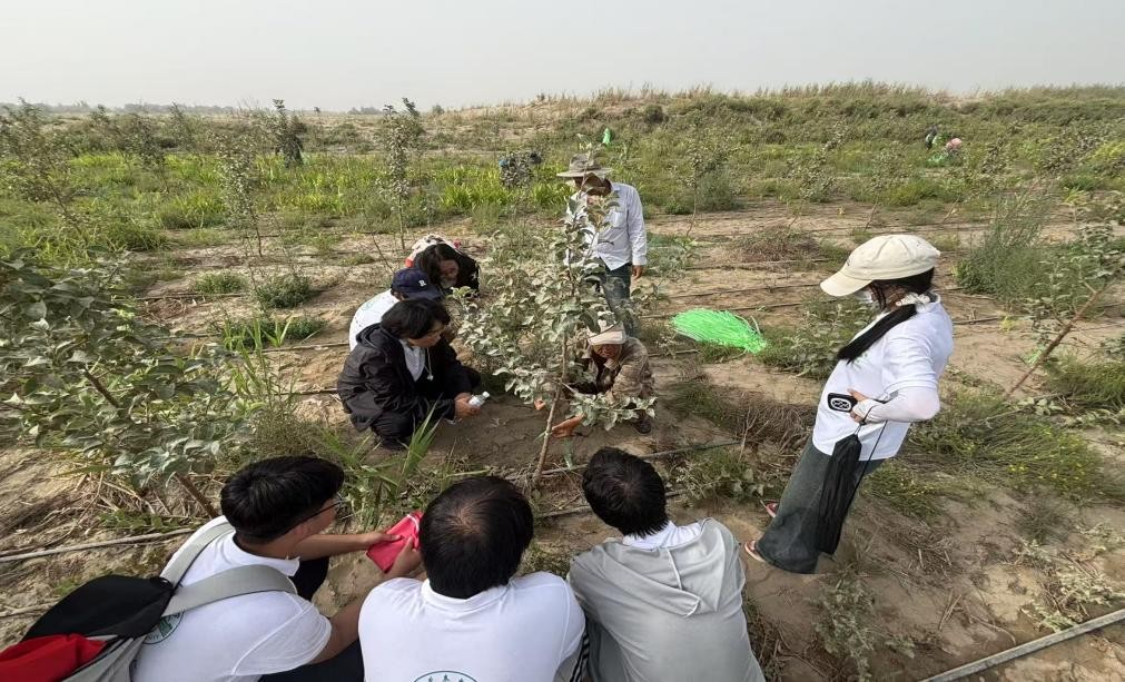 在種樹防沙、果樹修剪實踐活動中,實踐團成員們更是熱情高漲。在企業工人管理員李軍昌老先生的耐心講解與指導下,大家分工協作,有的挖坑、有的扶樹、有的澆水、有的修枝,每一個環節都一絲不茍。盡管天氣炎熱,但成員們的熱情絲毫未減,他們用實際行動為當地的防沙治沙工作貢獻著自己的一份力量。在勞動過程中,鄭總經理還向大家講解了種樹防沙的技巧和重要性,讓成員們深刻認識到防沙治沙對于改善當地生態環境、保障農業生產的關鍵作用。