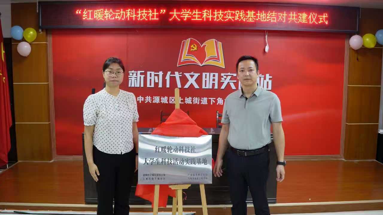 下午,廣東技術師范大學汽車與交通工程學院與河源市源城區上城街道團工委、下角社區居委會三方共建“紅暖輪動科技社大學生科技實踐基地”簽約揭牌儀式在下角社區舉行。學院黨委副書記鄺綺琳、上城街道黨工委副書記陳景力等領導出席見證。