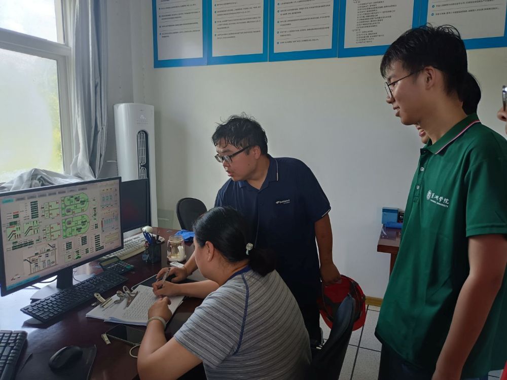 (圖為花山污水處理廠技術骨干在為實踐隊員介紹污水處理流程。石敏 供圖)