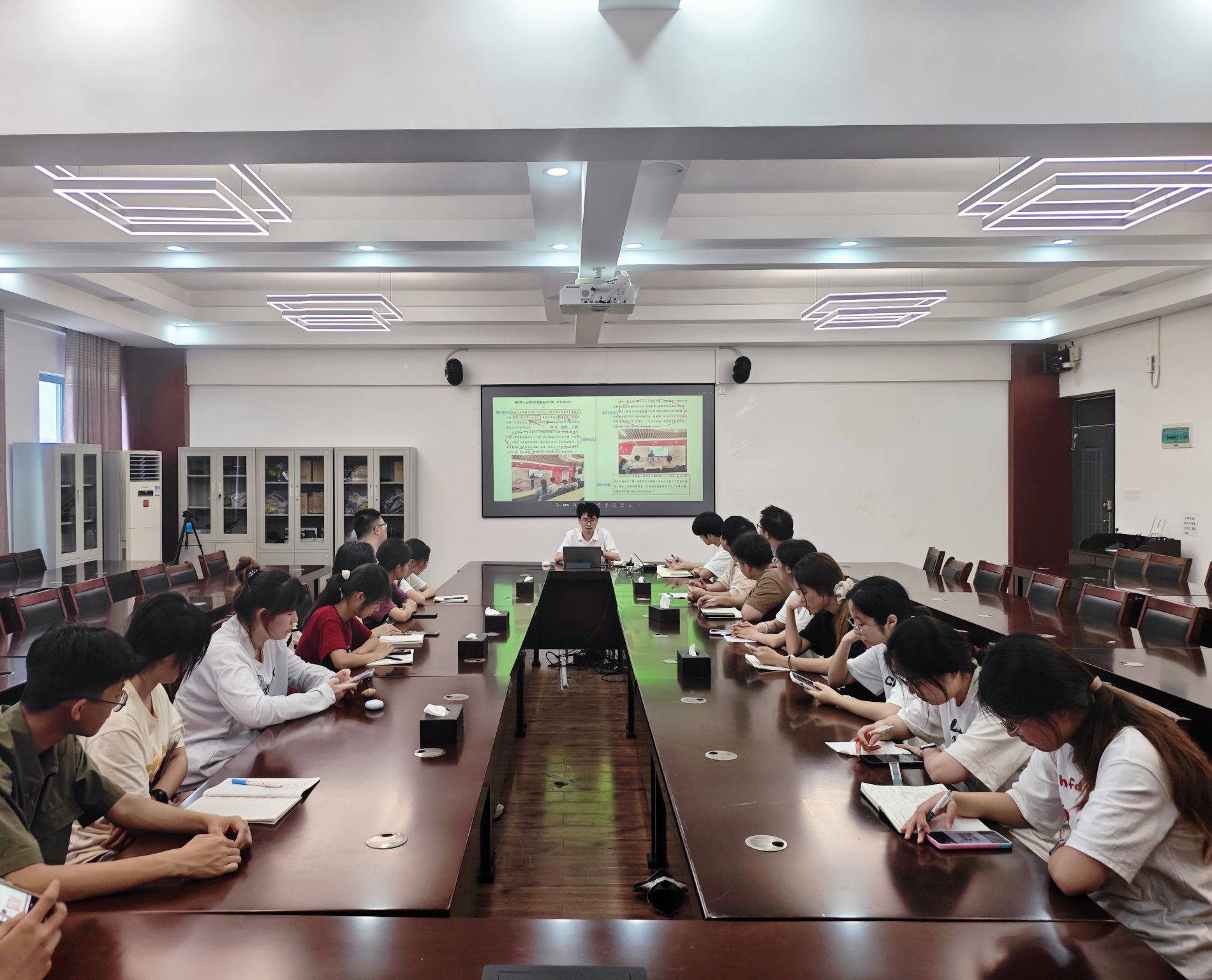圖為董翼老師為三下鄉(xiāng)學(xué)子進(jìn)行新聞培訓(xùn)