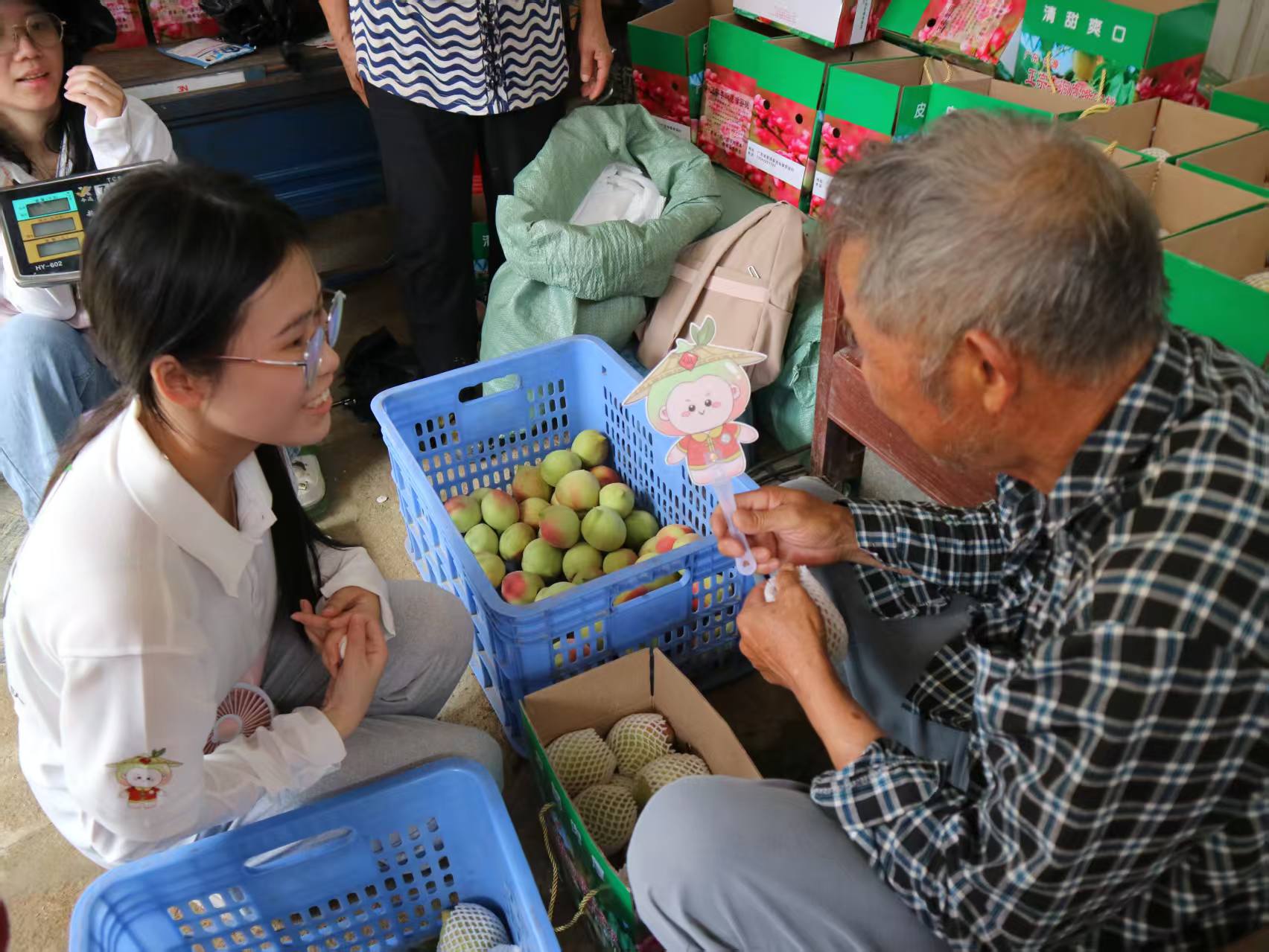 圖為突擊隊成員向果農爺爺介紹IP形象(黃紫楠供圖)