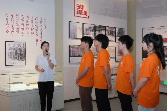 18日下午,服務團首站走進莊嚴肅穆的王良同志紀念館,懷著無比崇敬的心情瞻仰將軍故居。在沉浸式的參觀過程中,成員們通過詳實的史料與生動的講解,系統了解了王良將軍從熱血青年投考黃埔軍校,到毅然投身革命洪流、南征北戰屢建奇功的輝煌一生與不朽傳奇。尤為觸動人心的是,展柜中靜靜陳列的三封泛黃家書,字里行間流淌著將軍對親人的深情與對家國的赤誠。成員們駐足細讀,深切感悟到“家風正則國運興”這一樸素箴言背后所蘊含的崇高精神境界與深沉的家國擔當,內心受到強烈震撼與深刻教育。