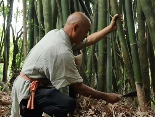 圖為肖云發師傅精心挑選竹子 陳慧賢攝