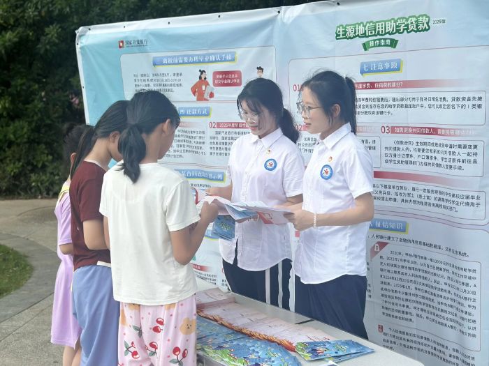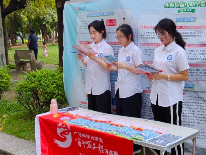 廣東江門幼兒師范高等?茖W(xué)校非遺傳承社會實踐團積極響應(yīng)廣東省2025年“國家資助和助學(xué)貸款政策下鄉(xiāng)行”活動號召,深入廣東省惠州市惠東縣大嶺街道,開展了一場主題活動為“國家資助伴你成長,助學(xué)貸款助力成才”的暑期“三下鄉(xiāng)”政策宣講實踐活動,將國家助學(xué)貸款這項重要的惠民政策傳遞到鄉(xiāng)村的每一個角落。