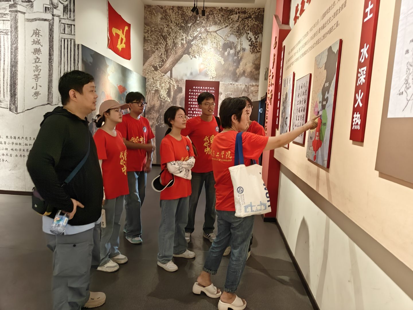 麻城作為著名的革命老區(qū),在中國革命史上留下了濃墨重彩的一筆。實(shí)踐隊(duì)來到麻城市乘馬崗鎮(zhèn),這里被譽(yù)為“中國第一將軍鄉(xiāng)”,走出了王樹聲、陳再道等26位將軍。隊(duì)員們首先參觀了三條半槍紀(jì)念館,館內(nèi)陳列的珍貴文物和歷史資料,生動(dòng)再現(xiàn)了麻城人民在黨的領(lǐng)導(dǎo)下,憑借“三條半槍鬧革命”的英勇事跡,拉開了黃麻起義的序幕,為中國革命的勝利作出了巨大犧牲和卓越貢獻(xiàn)。看著一幅幅充滿歷史感的圖片、一件件承載著革命記憶的實(shí)物,隊(duì)員們深刻感受到了革命先輩們堅(jiān)定的理想信念和勇于斗爭的精神。