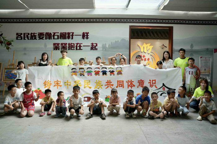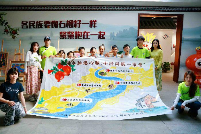 洪合鎮不僅擁有38個民族,更有一個響當當的光榮稱號:“全國民族團結進步示范區”。團隊成員來到這里,在洪合石榴紅家園,加盟了洪合鎮第五屆“小石榴養成營”,團隊來自青海的藏族同學杰哲在開營儀式上發言,深情感慨:“我從青海湖來到了西太湖又來到了南湖,最令我動容的是,這片土地上始終奔涌著‘千籽同根一家親’的精神血脈”。