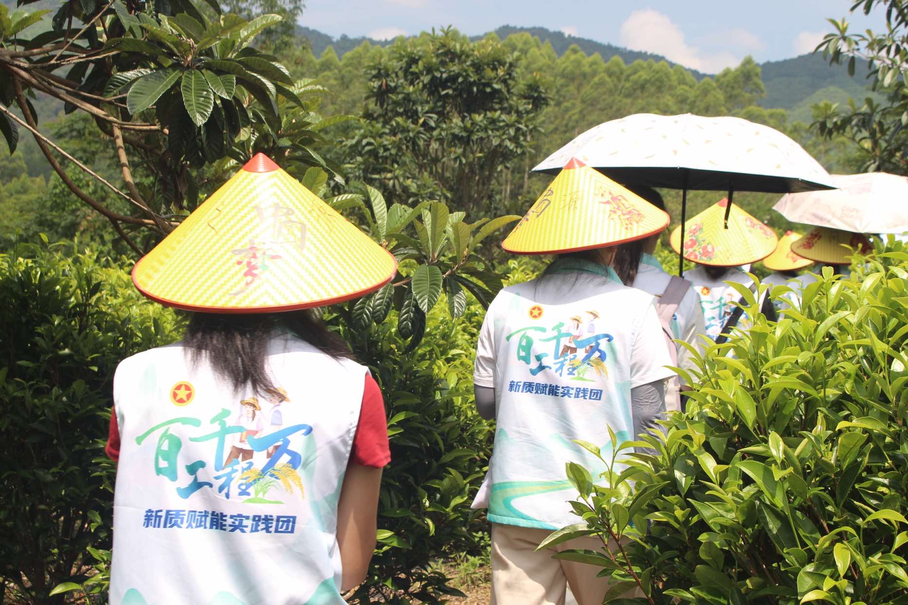 圖為肇慶學(xué)院政法學(xué)院新質(zhì)賦能實(shí)踐團(tuán)隊(duì)員在鳳之源茶山穿梭前進(jìn)。嚴(yán)祉雋供圖