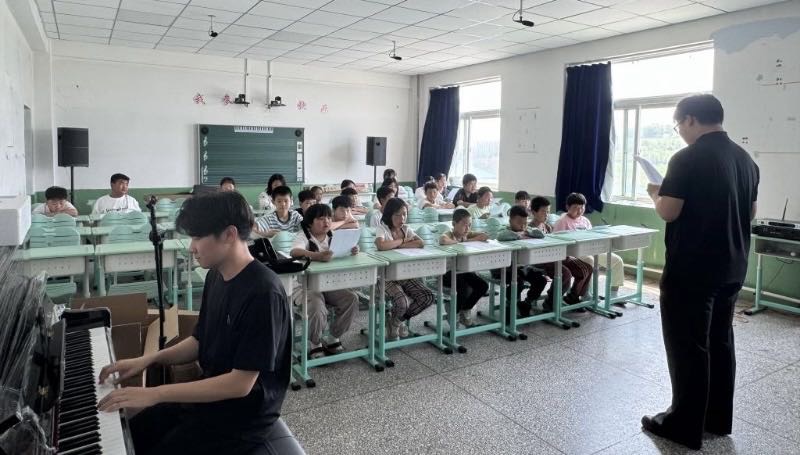 (圖為星火筑夢團為孩子們教授音樂課。李瀚松 供圖)