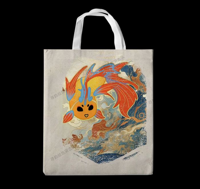 “小籠魚”是代表非遺魚燈文化的可愛IP。它以金魚為藍本,圓滾滾的橙色身體似小籠包,紅色魚鰭尾巴如火焰般靈動,藍色線條裝飾顯俏皮。在黑色背景中姿態各異,水波紋背景里仿佛自由游動。大大的眼睛、微笑的嘴巴傳遞積極樂觀。“小籠魚”既保留魚燈特色,又具現代卡通魅力,是連接非遺文化與大眾情感的橋梁,讓魚燈文化走進更多人心中。