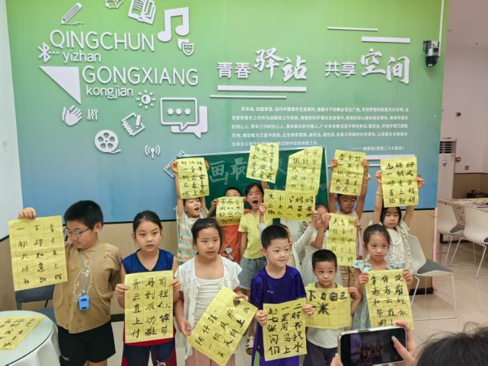 課程結束時,孩子們自豪地舉起自己的書法作品,臉上洋溢著滿滿的成就感。