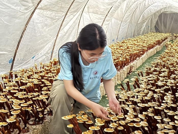 實踐隊員在華興鎮仙峰村調研靈芝的種植與養護過程,鄭玉玲攝