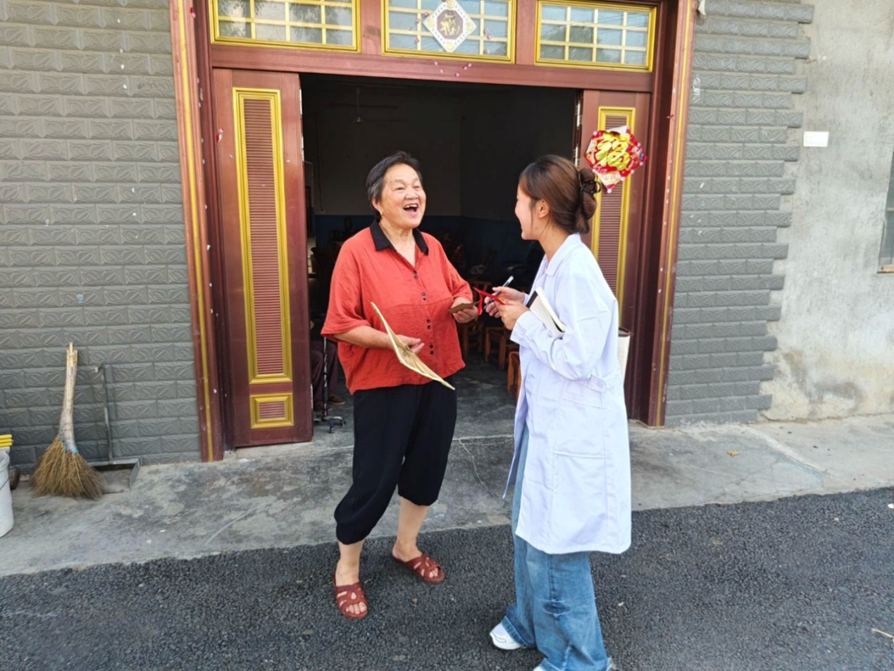 問卷填寫完畢后,隊員們并沒有立刻離開,而是與老人拉起了家常。從日常生活起居到身體狀況,從飲食習慣到娛樂活動,話題不斷延伸。老人臉上洋溢著幸福的笑容,向隊員們講述著村里的變遷和自己的人生經歷,隊員們則認真傾聽,不時點頭回應,歡聲笑語充滿了整個房間。這份跨越年齡的交流,不僅拉近了隊員與老人之間的距離,更讓隊員們深入了解了鄉村老人的生活狀態和健康需求。