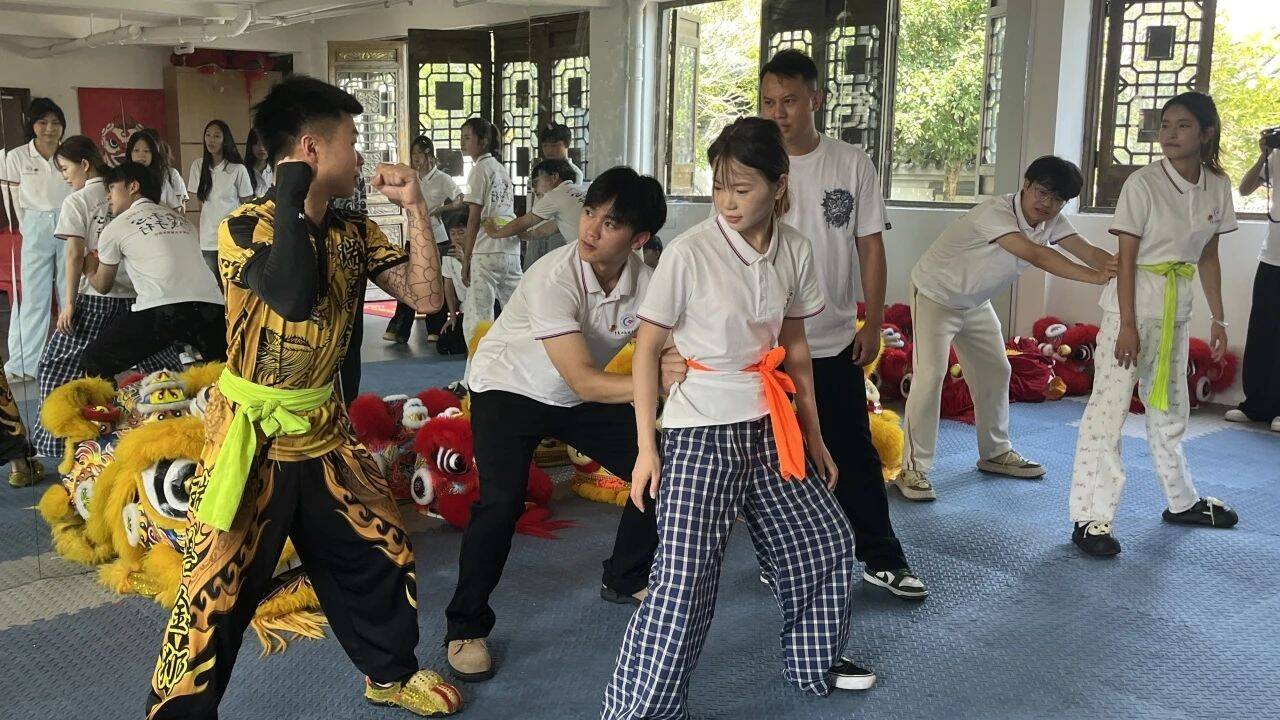 在隨后的學(xué)習(xí)環(huán)節(jié)中,傳承人耐心向?qū)嵺`團(tuán)成員講解了舞獅的基本動作要領(lǐng)和文化內(nèi)涵。從獅頭的握持技巧到步伐的協(xié)調(diào)配合,從眼神的傳神表達(dá)到手部的細(xì)膩動作,傳承人一一示范、細(xì)致指導(dǎo)。成員們熱情高漲,分組進(jìn)行練習(xí),盡管初期動作略顯生澀,但在反復(fù)揣摩與實踐中,逐漸找到了舞獅的韻律感,不少人還能完整完成“抱拳”“擺尾”等基礎(chǔ)動作,切身感受到了非遺文化的獨特魅力。
