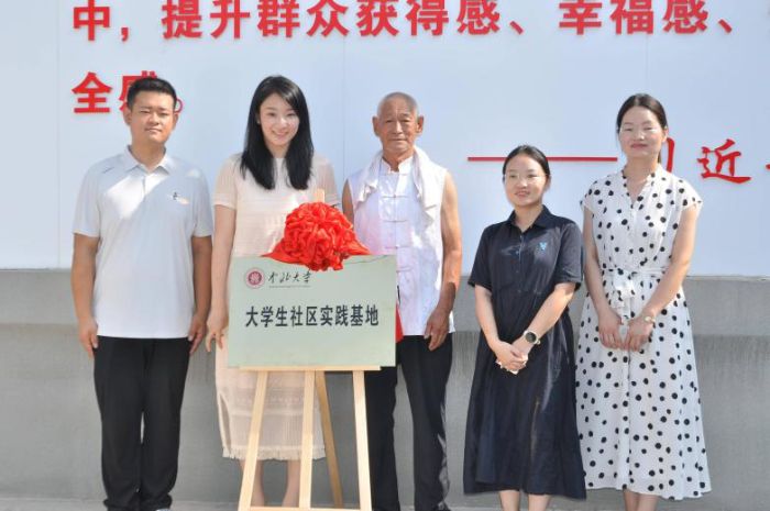 圖為指導老師買璐璐與翼城縣領導為“大學生社區實踐基地”揭牌(蘭甜馨攝)