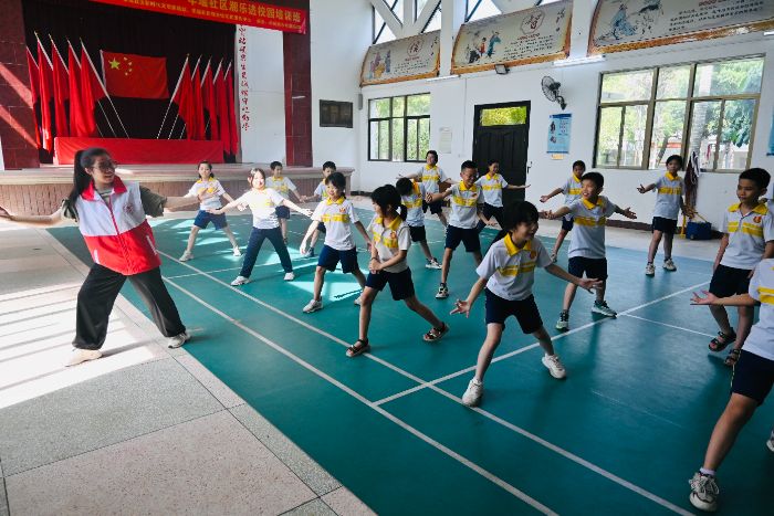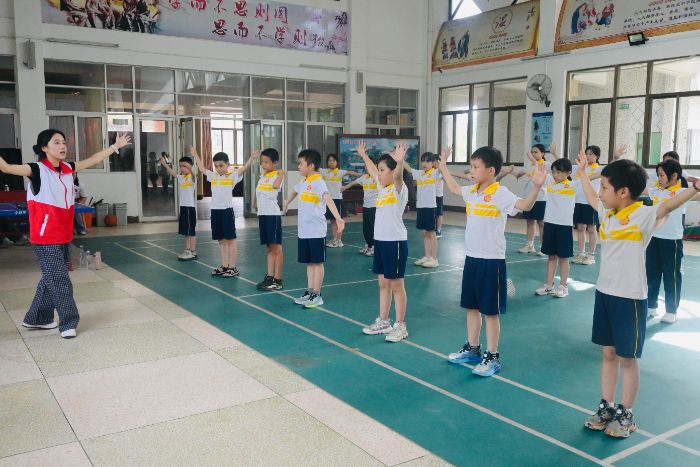 律動活力強體質。梁梓悅老師的元氣律動操課堂,伴隨歡快旋律引導孩子們舒展身體,在釋放活力的同時,增強體質,培養節奏感與協調性。