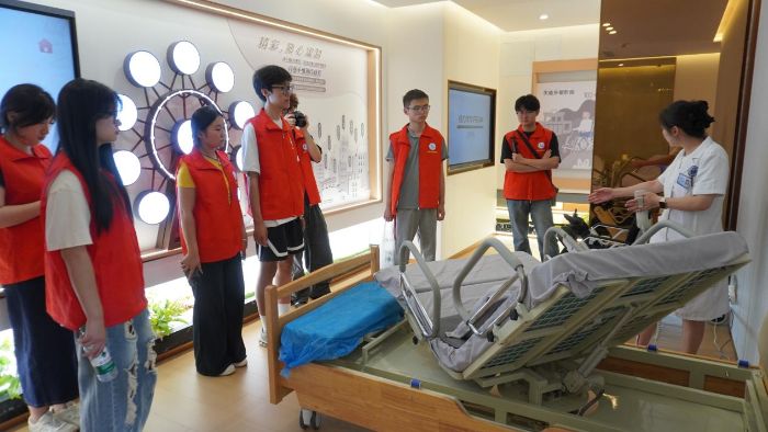 智慧康養展示區里,醫護人員演示智能護理床、體征監測系統等設備。可精準調節體位的護理床,能實時捕捉心率、睡眠數據的監測終端,讓康養服務更智能、更具人文關懷。實踐團成員親身操作、互動體驗,探究科技如何破解失能失智群體照護難題,思考智慧設備在養老場景中的適配性與推廣潛力,直觀感受醫療科技為康養服務帶來的革新,理解“科技+康養”模式對提升養老質量的價值。