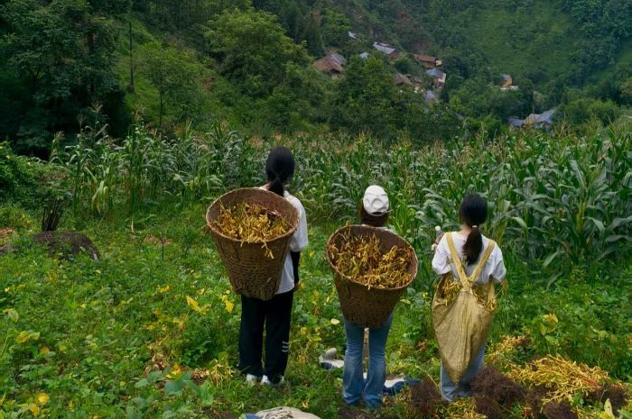 在吉惹進去的示范下,隊員們戴上粗布手套學習摘豆莢:捏緊根部輕提,力道不足摘不干凈,稍重又會拔起豆稈。烈日當空,汗珠落下,口渴的泥土當即吮入。隊員們真切感受到“粒粒皆辛苦”。休息時,吉惹進去的話引人深思:“這里的莊稼都長在陡坡上,成熟了全靠人背下山。”景艷梅對比家鄉的農機化耕作,感慨道:“這正是鄉村振興路上要破解的難題。”